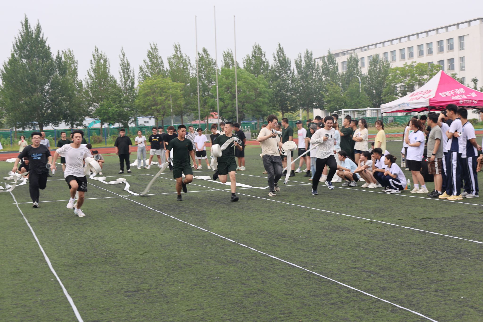 今年6月是第24个全国“安全生产月”,主题是“人人讲安全、个个会应急—查找身边安全隐患”。为进一步强化我校学生消防安全意识,提升自防互救能力,按照年度安全教育培训计划安排,于7月2日,在我校体育健身运动场举办2025年消防趣味运动会,活动的主题为“全员关注消防、建设平安校园”。本次消防趣味运动会由学校安全保卫处主办,一站式学生综合管理服务中心义务消防队承办,九个教学系分别派出代表队参加比赛,各系部党总支副书记及辅导员出席现场,共计有260余人参加了活动。活动由学生工作处副处长李闯主持。