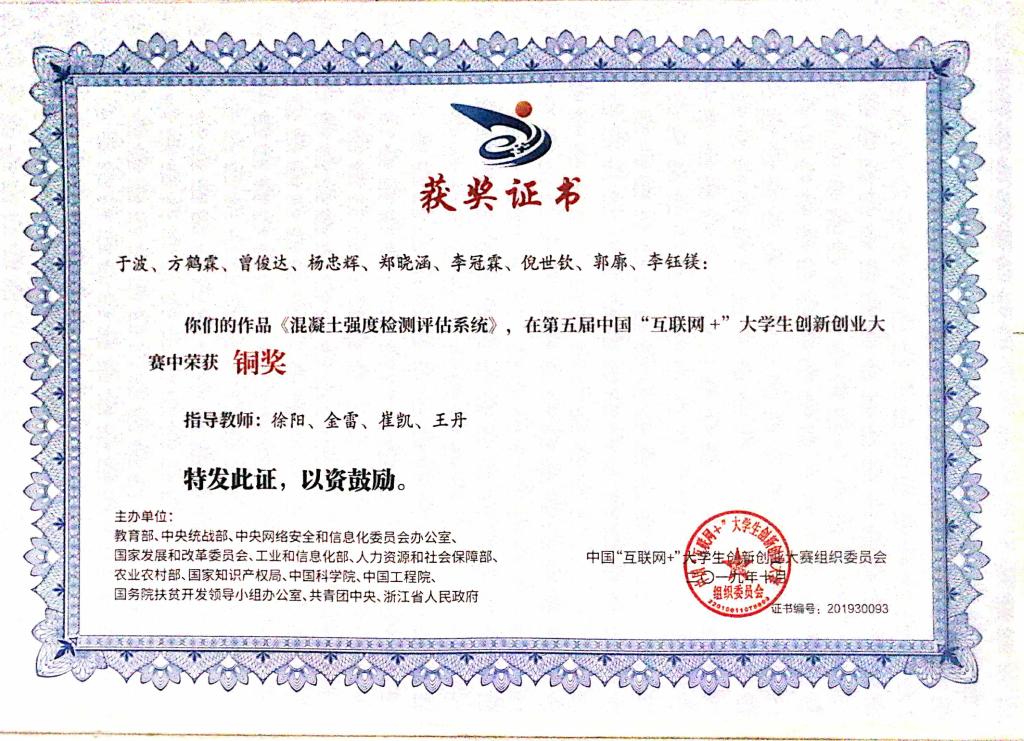 2019年10月,第五届中国“互联网+”大学生创新创业大赛在浙江大学落下帷幕,我校信息工程系徐阳、金雷、崔凯、王丹四位老师指导,方鹤霖、于波、曾俊达、杨忠辉、郑晓涵团队的“混凝土强度检测评估系统”项目晋级国家决赛,并获得铜奖。该团队是我校首次晋级中国“互联网+”大学生创新创业大赛决赛阶段,并实现了我校在该项赛事中奖项“零的突破”。中国“互联网+”大学生创新创业大赛,由教育部、中国统战部、中央网络安全和信...