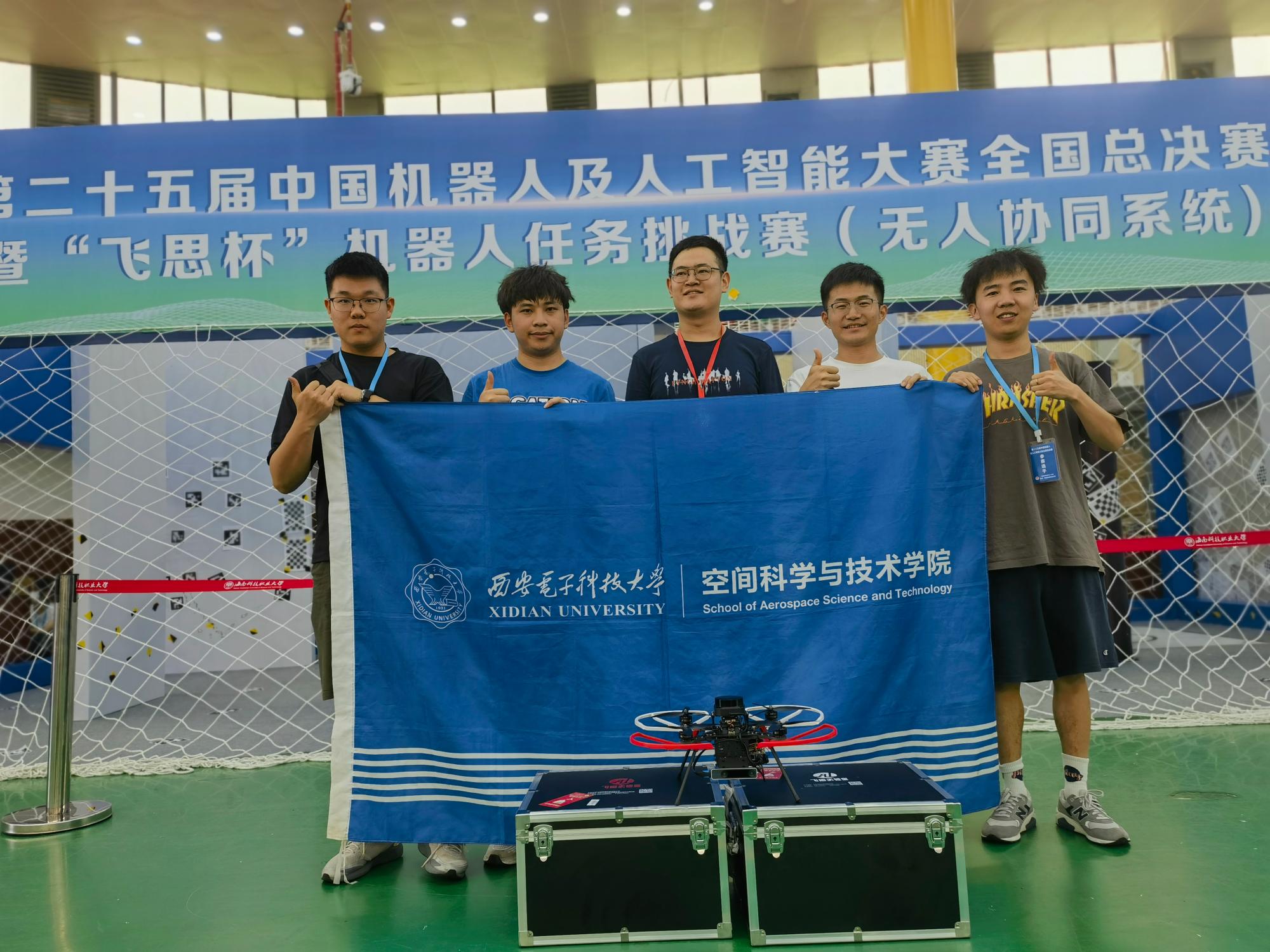 (通讯员 尚保强 张雨萌)近日,由中国人工智能学会主办的第二十五届中国机器人及人工智能大赛全国总决赛在海口落下帷幕。经过激烈角逐,西安电子科技大学空间科学与技术学院代表队在飞思机器人任务挑战赛(无人协同系统)赛道获得全国一等奖2项,在创新类赛项获得全国二等奖1项。进入全国总决赛队伍全部获奖,也是我校在无人机赛道首次获得全国一等奖。飞思机器人任务挑战赛(无人协同系统)围绕无人智能体协同应用领域,...