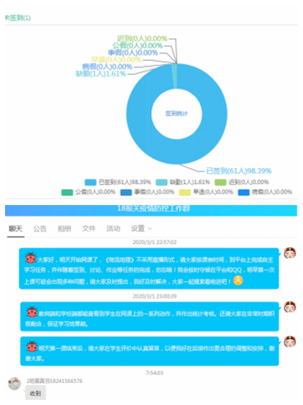 经过前期的精心策划、研究部署和各部门的密切配合,今天的线上教学稳步运行,同学们学习热情高涨,初步实现了预期的教学目标。