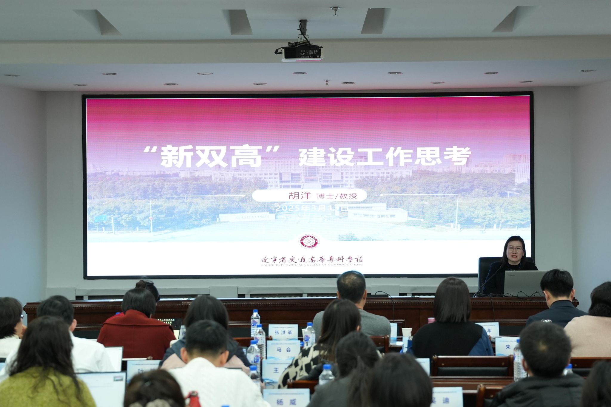 我校教务处胡洋处长从“双高”建设的历史沿革、“新双高”的建设背景、“新双高”与首轮“双高”的区别、“新双高”建设任务的理解与思考等方面分享了“新双高”建设工作,提出未来需进一步深化校企合作,创新体制机制,构建数字化教学新生态,为职业教育高质量发展注入新动能。