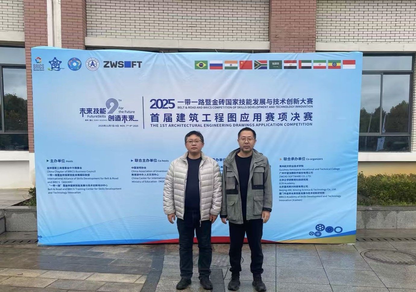 11月7日至9日,2025一带一路暨金砖国家技能发展与技术创新大赛之首届建筑工程图应用赛项总决赛在贵州航天职业技术学院顺利落幕。建筑工程系武斌、薛忠泉两位教师组成参赛队伍,在全国28支参赛队伍的激烈比拼中表现出色,最终荣获三等奖。