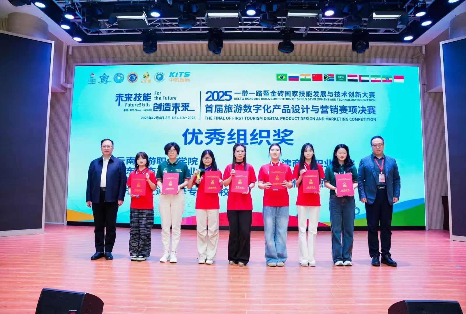 127日,2025一带一路暨金砖国家技能发展与技术创新大赛之首届旅游数字化产品设计与营销赛项全国总决赛在海南经贸职业技术学院圆满落幕。我校管理工程系会展专业师生组队参赛,凭借深厚的专业素养、扎实的技术能力与出色的实战表现,在全国赛场实现教师组与职教组“双线突破”——教师团队斩获全国二等奖,学生团队荣获全国三等奖。其中教师组在全国21支参赛队伍中位列第4名。赛事组委会高度认可我校在组织参与赛事中的突出贡献,同时授予我校优秀组织奖。所获荣誉充分展现了我校在数字化技能人才培养与教师专业能力建设领域的硬实力。