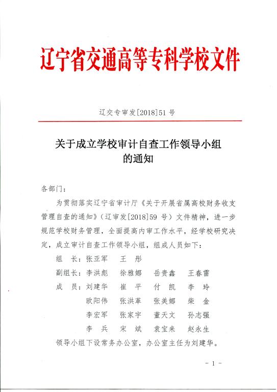 关于成立审计自查工作领导小组的通知