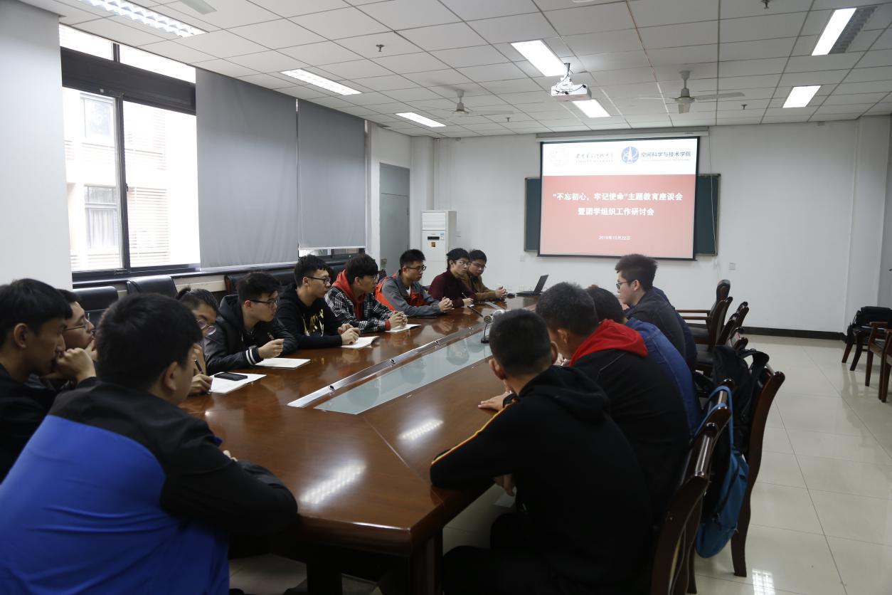 (通讯员 郑瑞博 巴永汕)10月22日中午,空间科学与技术学院在南校区G楼251会议室举办学生骨干“不忘初心、牢记使命”主题座谈会。学院党委副书记刘涛,团委书记郑瑞博,学院团委、学生会、科协以及新闻中心学生骨干共计十五人参加了会议,会议由郑瑞博主持。