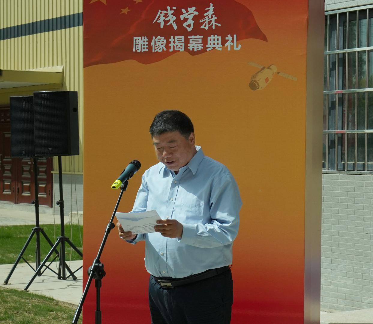 学生代表楚昊宁在钱老雕像前致辞