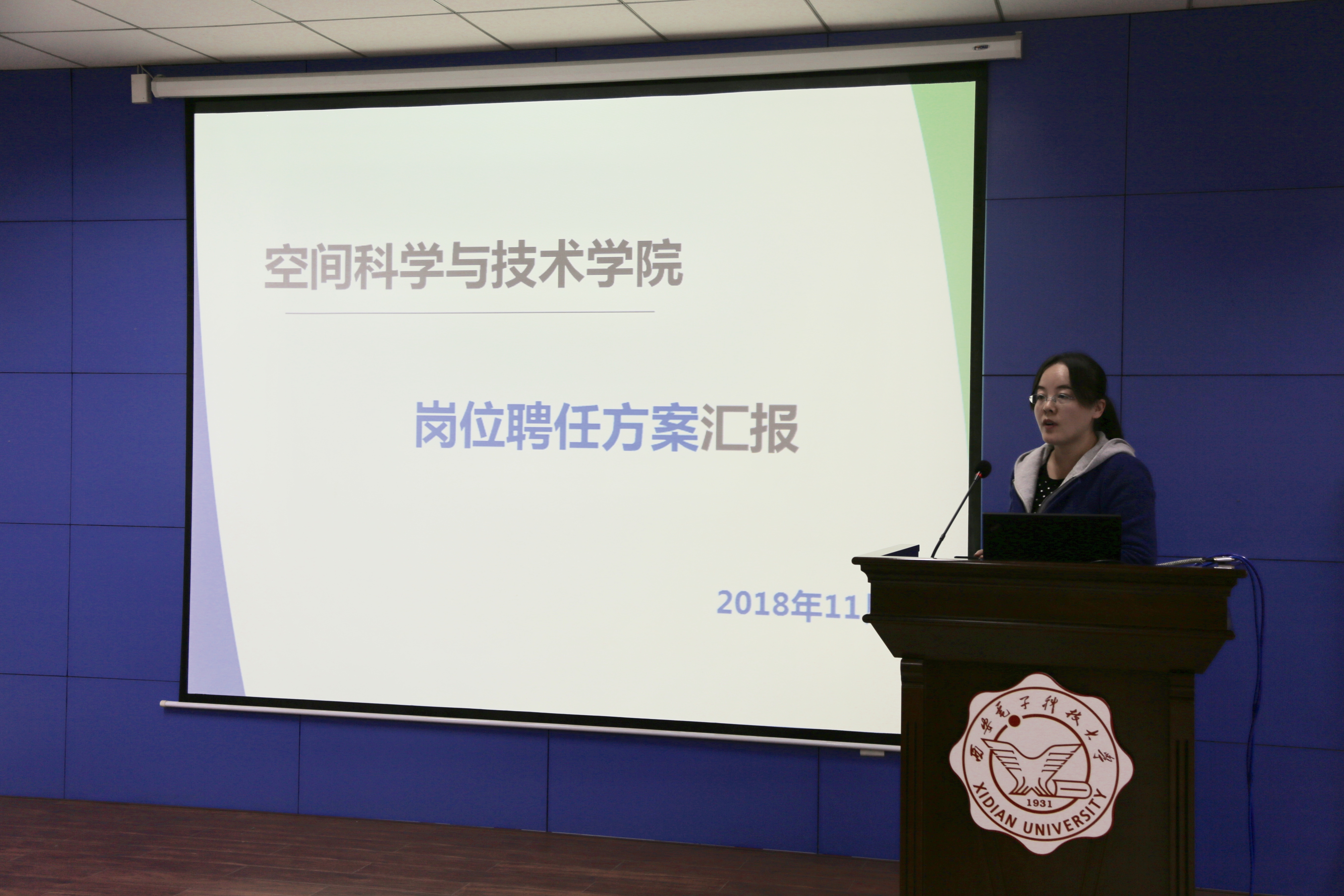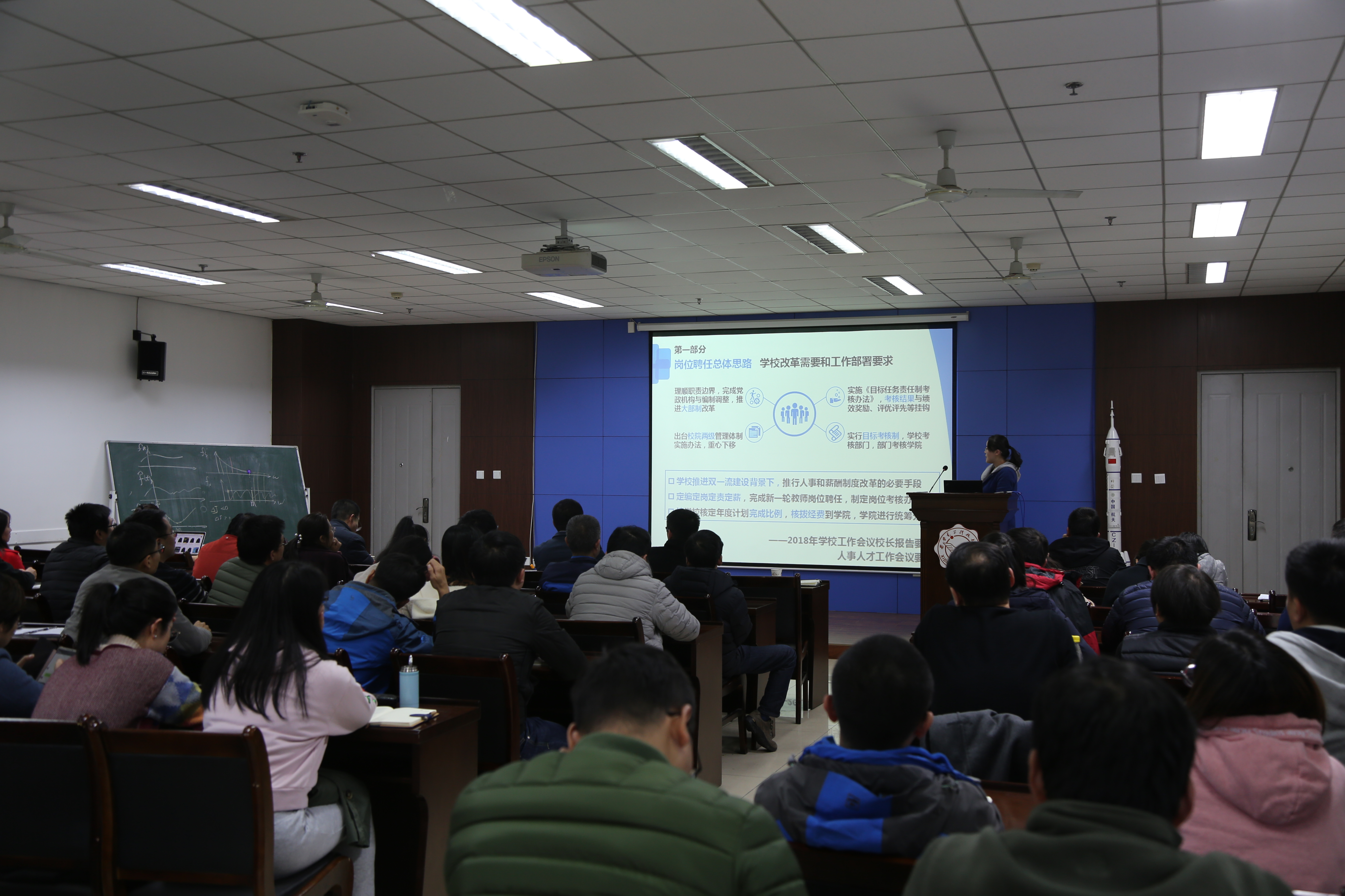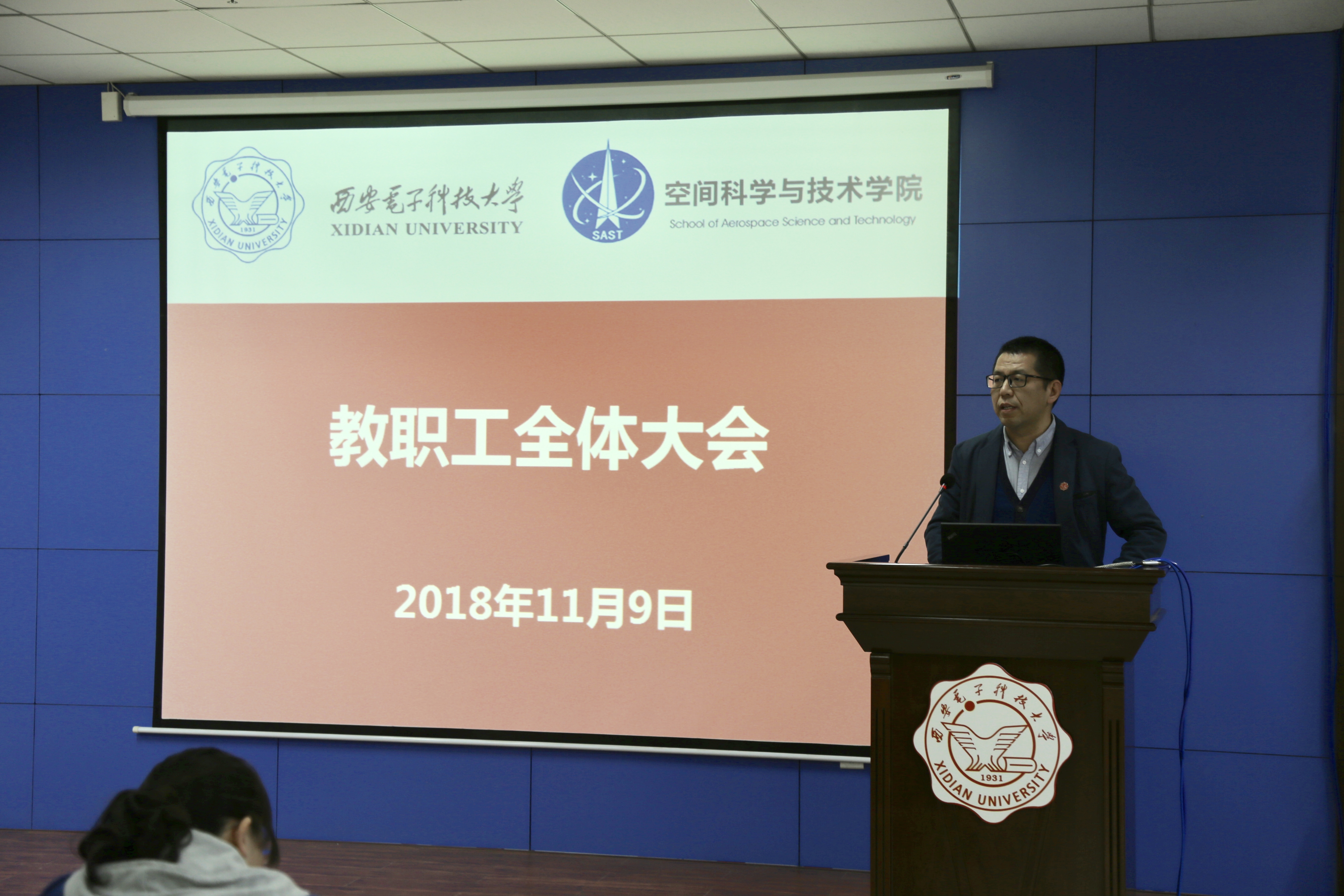 (通讯员:郑瑞博)11月9日下午,空间科学与技术学院2018年度全体教职工大会在南校区G楼240报告厅召开,全体教职工参加了会议。会议安排部署了学院近一阶段的各项工作,讨论、审议并一致通过了学院《2018-2020专业技术岗位聘任方案》。