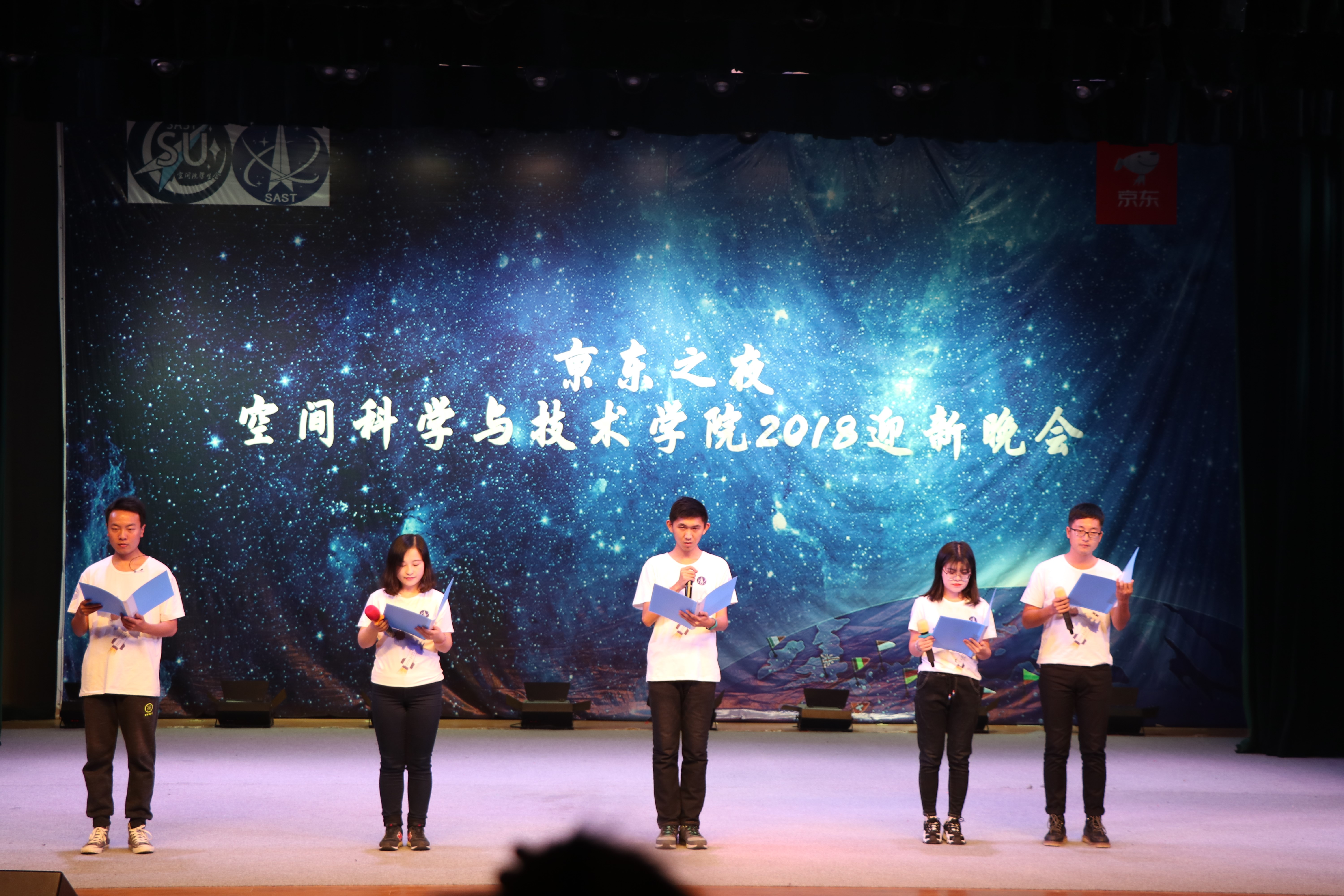 伴随着动感十足的音乐,一支爵士舞蹈为晚会开场,舞姿优美,热情洋溢。四位主持人登台宣布晚会正式开始。空间科学与技术学院副院长姜莉莉代表学院致辞,她首先对2018级新生的到来表示欢迎,同时简要回顾了学院过去一年取得的成绩,姜莉莉寄语全体新生不忘初心,继续前进,在未来四年中认识自我、了解自我、提升自我、实现自我,在美好的青春年华实现美好的青春梦想。