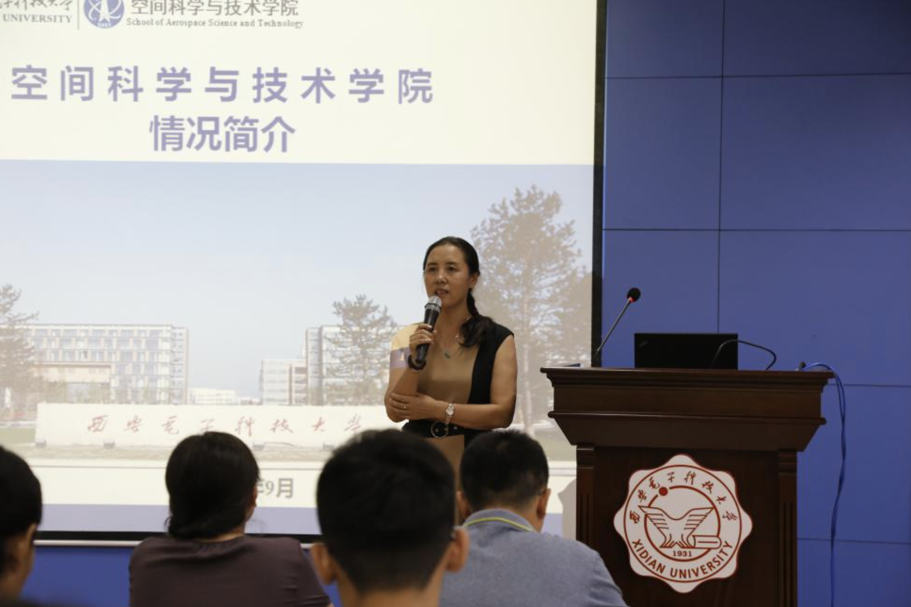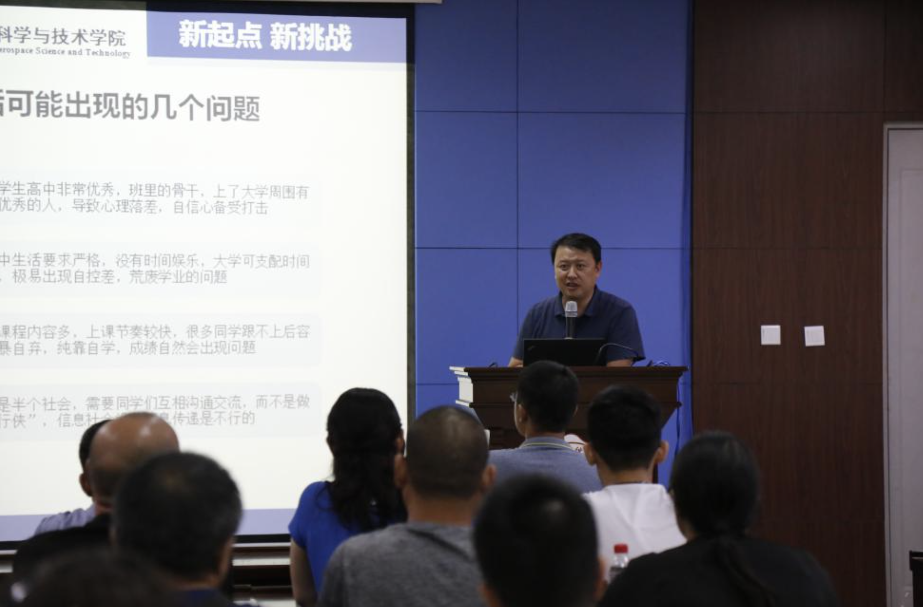 李小平首先代表学院对2018级新生以及家长们的到来表示热烈的欢迎,欢迎他们加入空间学院这个大家庭。随后她从学科专业、师资队伍、教育教学、科学研究、人才培养等方面介绍了学院的基本情况,并着重介绍了学校实行的本科生院和书院制度。李小平表示学院将尽一切努力为学生提供良好的成长环境和发展平台,为学生的成长保驾护航。