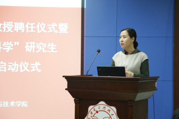 人事处处长周燕来教授代表学校宣读了“西安电子科技大学关于聘请闵昌万研究员为兼职教授的决定”并颁发证书,李小平执行院长为其佩戴校徽。
