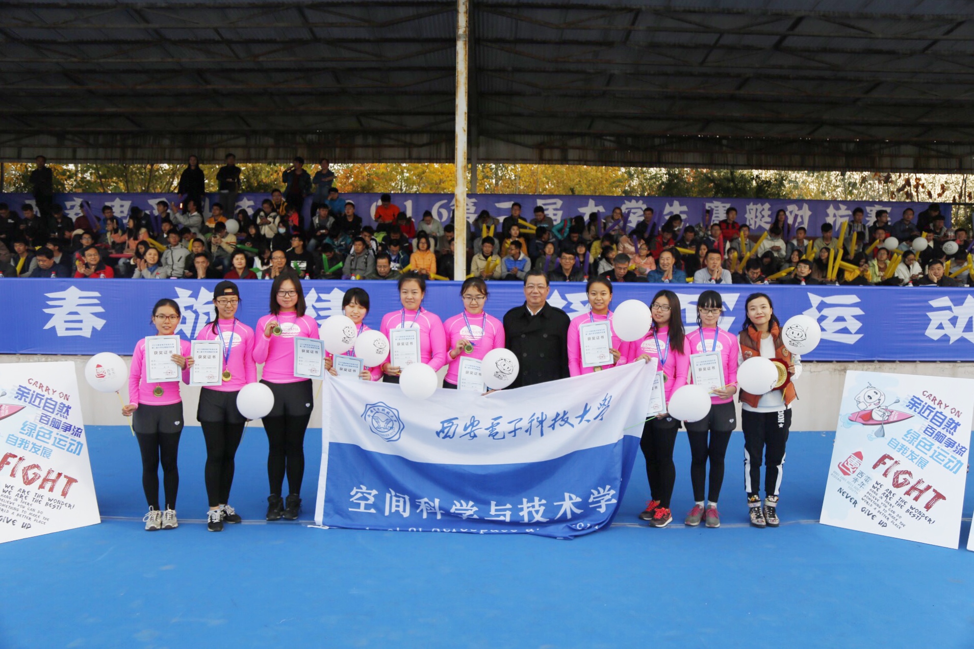 2016年11月12日,西安电子科技大学第二届赛艇对抗赛在位于杨凌的陕西省水上运动中心举行。在此次比赛中,空间院的运动健儿们斩获一金一银,获得女子组冠军,男子组亚军的优异成绩!