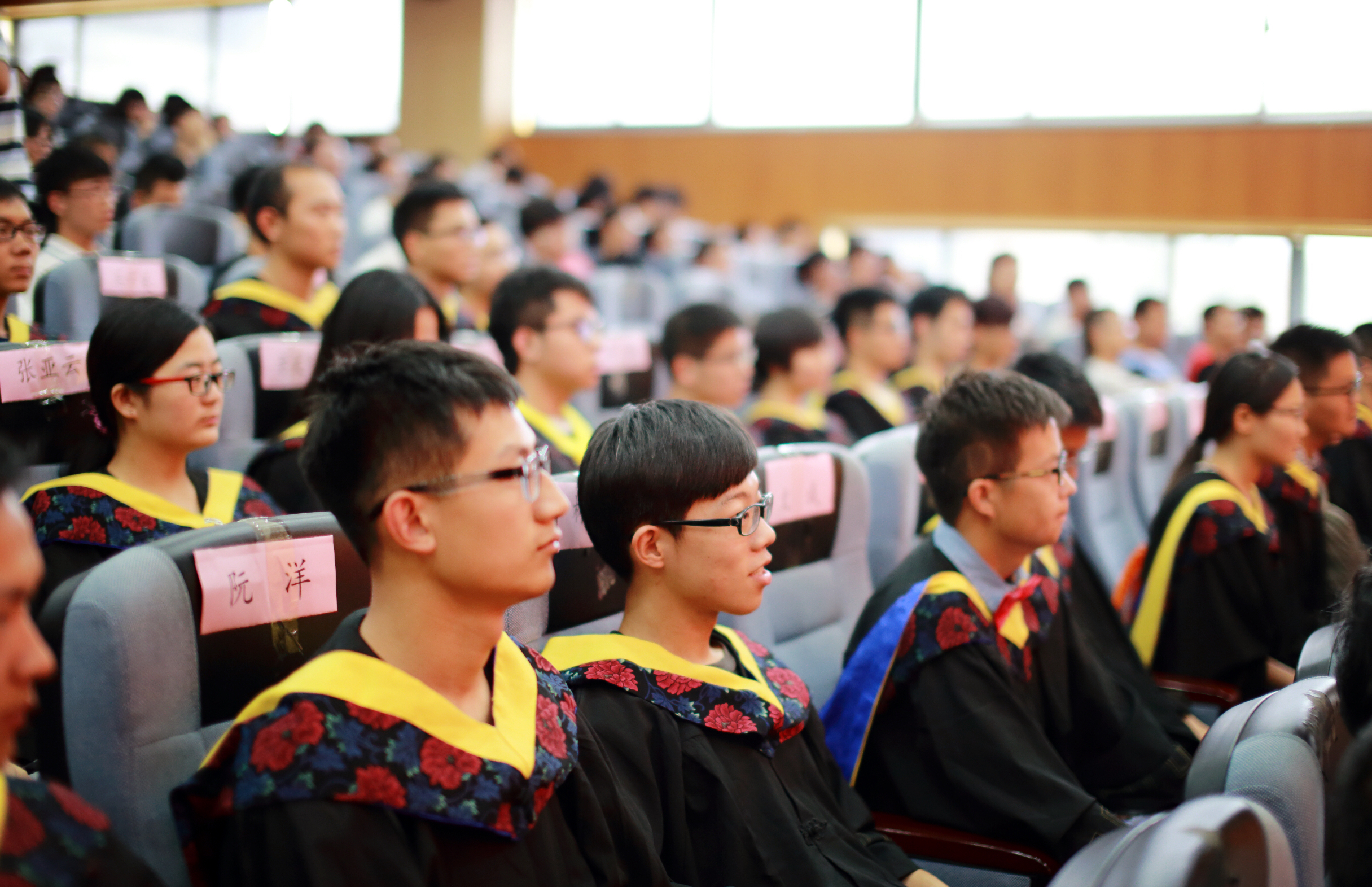 典礼上,包为民院长发表了热情洋溢的讲话,他首先代表学院向第一届优秀的毕业生们表示最热烈的祝贺,对为此辛勤耕耘,奉献在教学一线的老师们表示最诚挚的感谢。他说:“能够与学院全体师生共同见证这一历史时刻,我十分高兴,倍感幸运,空间学院在过去的几年中取得了优异的成绩,但是,最大的成绩就是我们优秀的毕业生们。我们的首届毕业生非常优秀,即将去往国内外各大名校积极深造,不论你们将来去往何处,都是为我们国家的建设积蓄力量。”包为民还与师生们分享了长征7号运载火箭圆满发射的成功喜悦和祖国空间科学的最新进展,他从空间碎片的清理实验、摆渡车实验、空间动力实验谈到长征七号运载火箭的载运能力由八吨上升到十三吨等等。