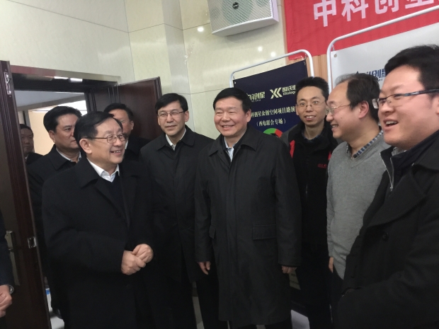 就在同学们正在进行紧张的路演时,全国政协副主席、科技部部长万钢,陕西省省长娄勤俭,科技部副部长阴和俊等一行来到中科创星众创空间调研科技创新与创业工作,恰巧经过路演的会议室并听说同学们正在进行创新项目的路演时,便来到会议室与师生们进行了亲切交流,他说:“当今社会是一个创新型社会,应该大力鼓励大学生进行创新创业,只有这样,我们的国家才能不断发展。预祝大家路演成功!”