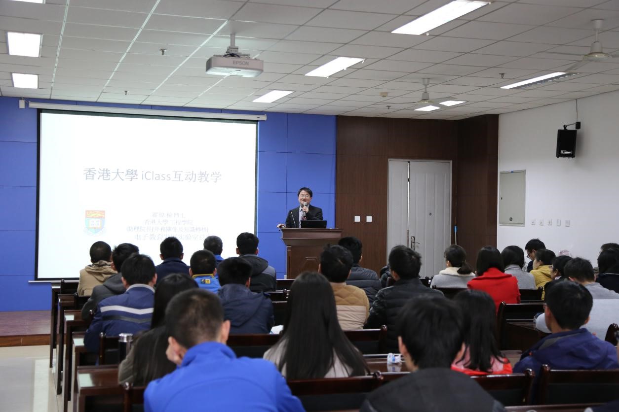 (空间学院 教师教学发展中心)2月28日下午,香港大学校董,工程学院助理院长霍伟栋博士受邀来到南校区G楼240报告厅做了一场题为“香港大学iclass互动教学”的讲座。霍伟栋博士为在场一百余名师生详尽地介绍了香港大学自主研发的该平台,并且现场展示了一堂生动的演示课。