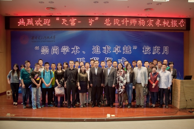 报告会开始前,副校长杨银堂向杨宏颁发了我校科技委委员聘书。科研院常务副院长石光明介绍了杨宏简历。报告会由空间科学与技术学院执行院长李小平主持。学校各单位负责人,以及教师学生代表共计300余人参加了报告会。