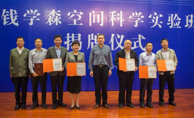 上海交通大学钱学森图书馆馆长钱永刚教授、中国航天科技集团公司科技委主任包为民、中国人民解放军总装备部钱学森办公室顾吉环、钱学森研究会专家陈大亚、陕西省教育厅副厅长郭立宏,以及学校党委书记陈治亚、校长郑晓静院士共同为西安电子科技大学“钱学森空间科学实验班”揭牌。