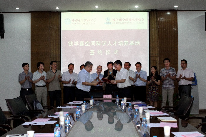 2014年6月6日,西安电子科技大学-钱学森空间技术实验室“空间科学人才培养基地”签约仪式在北校区办公楼第三会议室隆重举行。校党委副书记龙建成、空间科学与技术学院院长包为民院士、钱学森空间技术实验室(以下简称钱室)主任陈泓研究员、脉冲星导航研究中心主任帅平研究员、研发处处长李盛林高工、综合办公室主任陈强高工等一行出席了仪式,学校教务处、科研院、空间科学与技术学院负责人及空间学院师生代表参加了签约仪式。仪式由郭宝龙处长主持。
