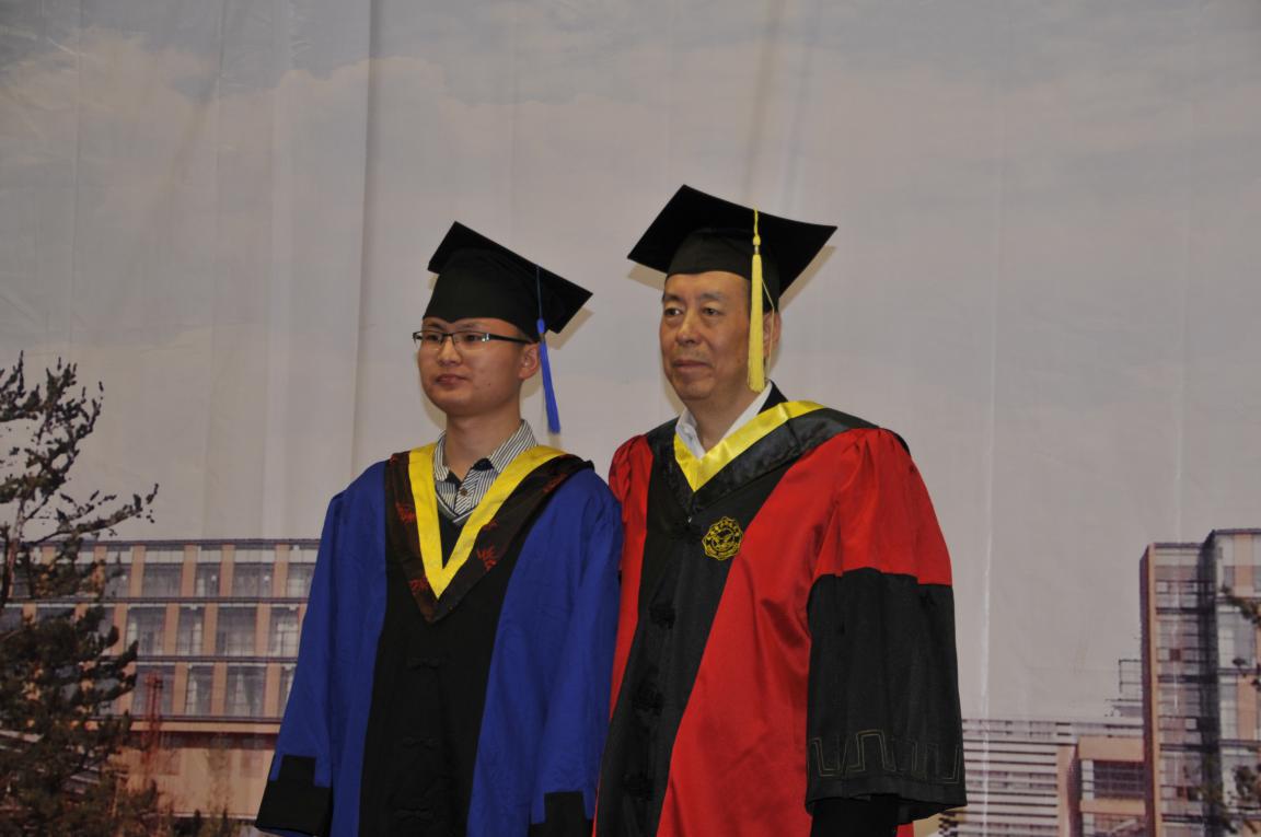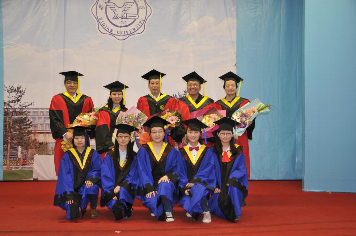 首先,执行院长李小平教授宣读空间院2014届硕士毕业生授位决定,本次授位毕业生共52人,分别来自电路与系统、通信与信息系统、检测与自动化装置、导航制导与控制等10个学科。郭宝龙教授宣读“2014届校优秀硕士学位论文获奖”名单和“2014届院优秀硕士学位论文获奖”名单,向获奖学生表示衷心祝贺。典礼第三项由副校长、研究生院院长郝跃院士亲自为获得学位的毕业生一一颁发学位证书并执拨穗礼,同学们依次上台接受郝院士授位并合影。