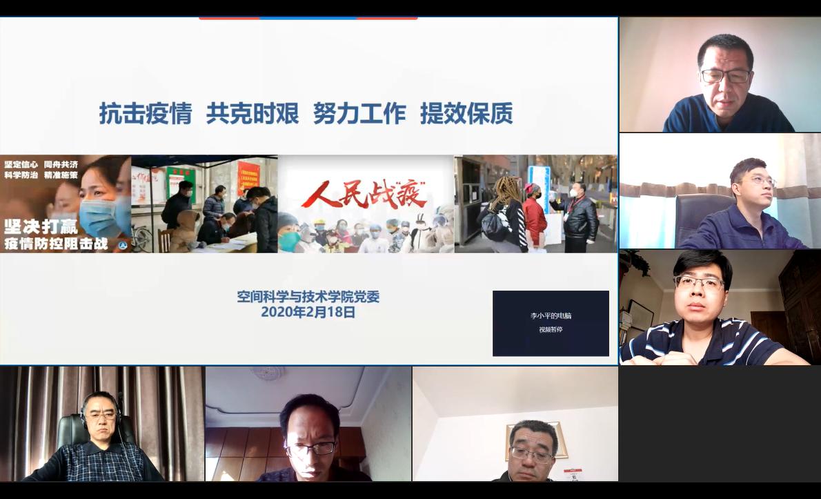 西电新闻网讯(通讯员 叶宇)为落实学校会议精神,部署安排学院学期工作和学院疫情防控工作,2月18日下午,空间科学与技术学院召开2020年春季学期学院工作部署视频会议,学院全体教职工参加会议,会议由学院执行院长李小平主持。