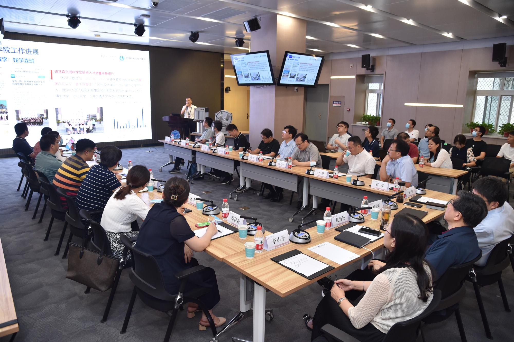 刘彦明首先汇报了学院近年来本科教学、研究生培养、科研发展、学科建设、师资队伍等工作情况,深入分析了学院目前面临的本科生源质量下降、拔尖人才培养政策调整、研究生满意度下滑、人才队伍建设短板等问题,并指出学院将多措并举提升专业教学水平,探索升级钱学森班人才培养方案,以产教融合为抓手提升研究生培养质量,面向国家重点战略需求谋划重点科研项目,不断优化学院学科专业结构,聚焦学科方向加强人才育引力度,加快推进空间大楼建设。