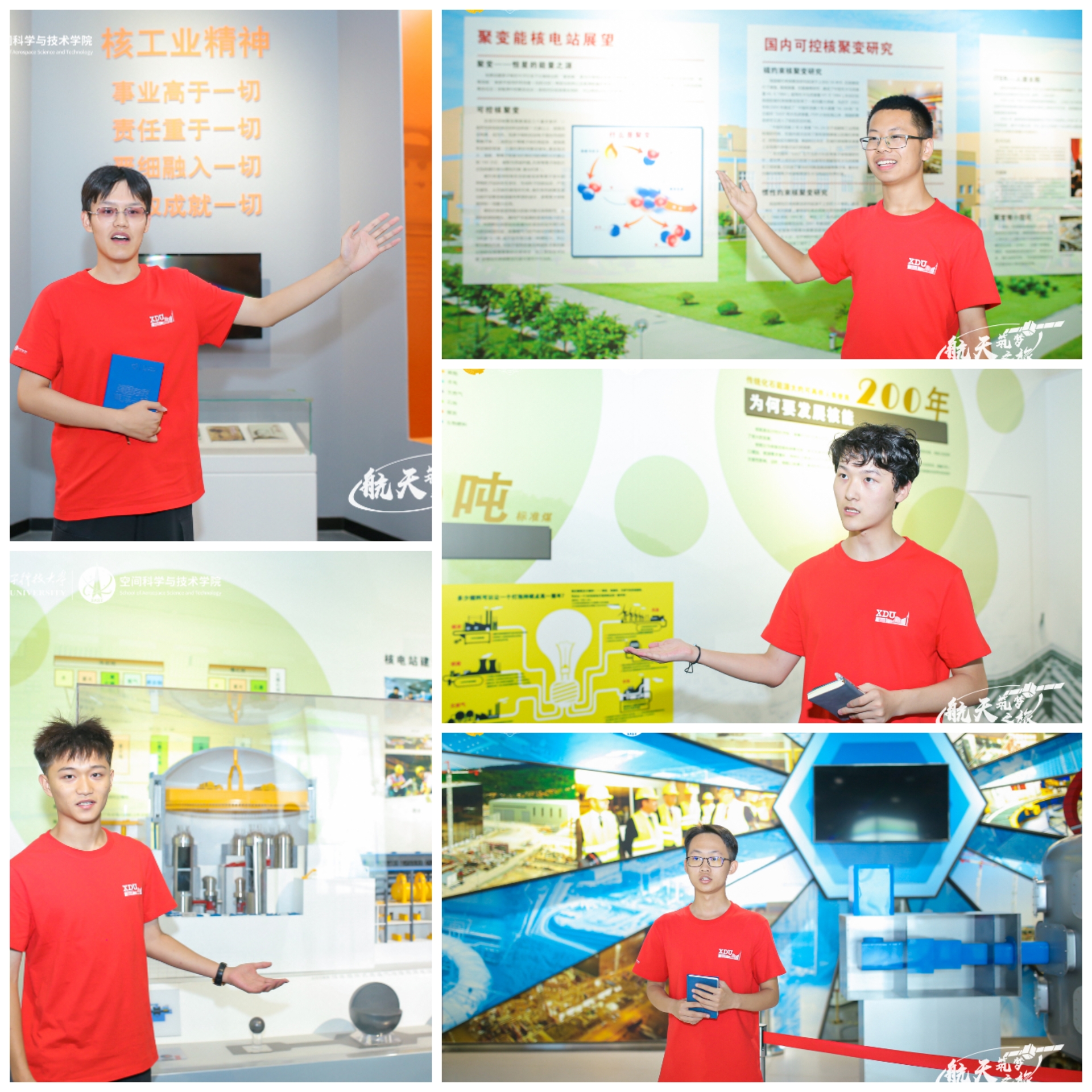 实践队第二站来到中国核工业科技馆,“一日讲解员”程炳尧同学带领大家领略我国核科技发展历程,从出土于广西壮族自治区的开业之石,到五厂三矿的开工,直至国际领先水平的华龙一号、玲龙一号以及环流器二号M托卡马克装置,了解了我国核科技起步之艰难发展之迅速。在核科学家展厅他讲道:“我国核科技工作者们,不踯躅于繁华景象,而逑于民族复兴大计,彰显了以爱国主义民族精神为内核的家国情怀,深刻诠释了爱国主义信仰的伟大力量。‘两弹一星’的成功研制,打破了西方大国对我们的核讹诈、核威胁,为实现中华民族伟大复兴奠定了安全稳定的国际环境。”