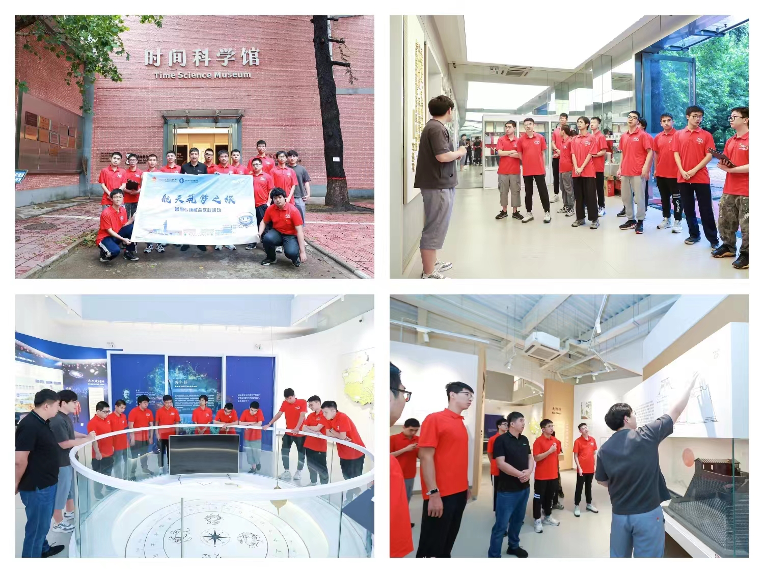 国家授时中心是我国唯一专门全面从事时间频率基础和技术研究的科研机构,担负着我国标准时间的建立、保持和发播任务,可靠的高精度授时服务在以卫星发射、火箭试验为代表的中国航天技术发展中做出了重大贡献。授时中心时间科学馆由授时中心原实验工厂厂房改造而成,共有展品180余件,上下两层分别以时间科学和授时中心发展史为主题。在授时中心时间科学馆的实践学习中,实践团详细了解了人类计时的演进过程,感受到了时间科学的魅力。同学们不仅对国家标准时间—北京时间的产生原理有了更加清晰的认识,更是对我国先进的原子钟技术感到无比自豪。