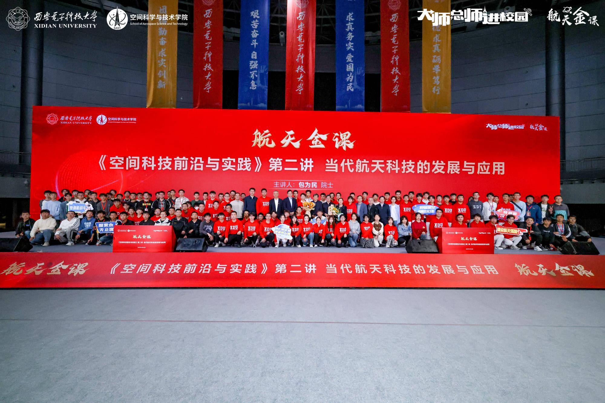 10月15日晚,中国科学院院士、中国航天科技集团科技委主任、西电78级校友包为民以《当代航天科技的发展与应用》为题讲授《空间科技前沿与实践》第二讲课程,中国科学院院士于登云,西安电子科技大学校长张新亮,党委常委、党委宣传部部长季庆阳参加活动。此次课程是中国科协“科普中国”系列活动,也是学校“大师总师进校园”系列活动之一,来自钱学森空间科学实验班、丁香书院、空间学院等单位的6000余名学生共同聆听了这场航天科普公开课和航天思政金课。课程报告会由副校长王泉主持。