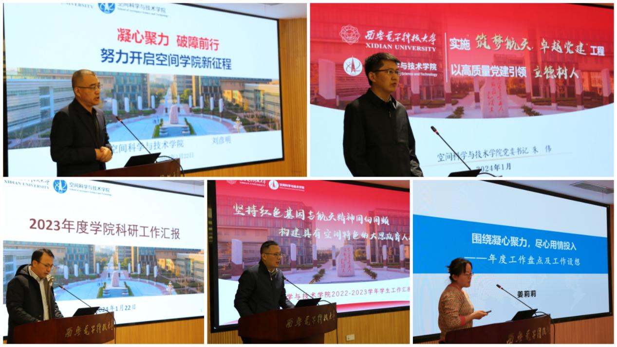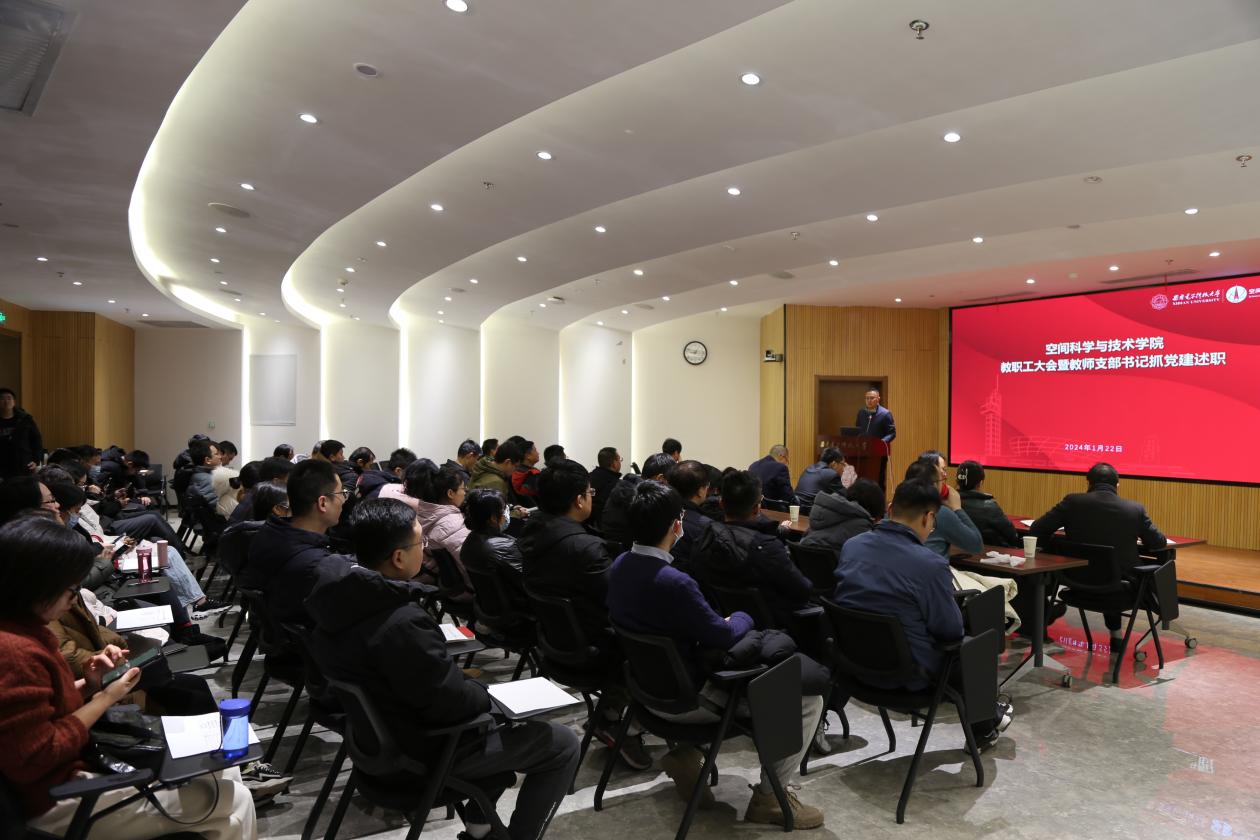 (通讯员 尹沛琛)1月22日上午,空间科学与技术学院在南校区会议中心101会议室召开学院年度工作总结会议暨班子成员和支部书记述职会,会议回顾总结了2023年工作开展情况,对2024年工作进行了展望。会议由学院党委副书记卢毅主持,学院党政班子成员和全体教职工参加会议。