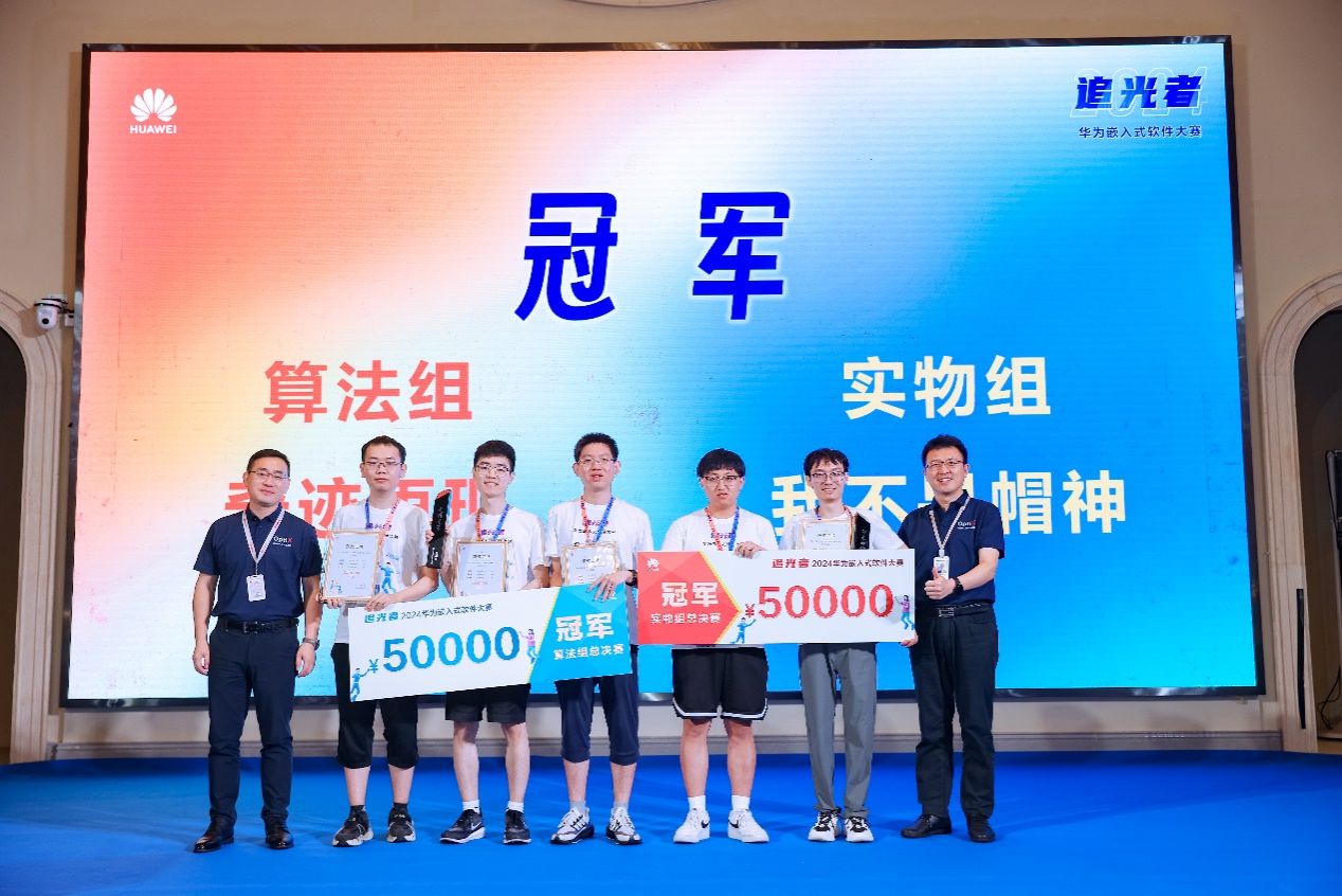 据悉,华为嵌入式软件大赛是华为公司面向全球高校有志于在嵌入式软件领域发展的在校学生举办的大赛,旨在激励学生学习嵌入式的兴趣,培养他们分析问题、解决问题的能力。2024年华为嵌入式软件挑战赛分为实物组和算法组,在经历各个赛区初赛筛选后,每个赛区算法组和实物组共24支队伍进入了初赛现场决赛,在全国每个赛区两个赛道决出冠亚季军共6队优胜队伍后,六大赛区分别派出这6支晋级队伍,共36支队伍进入了全国总决赛。36支队伍经过激烈比拼,在实物组和算法组两条赛道共产生了2支冠军队伍、2支亚军队伍、4支季军队伍和2支新光奖队伍。
