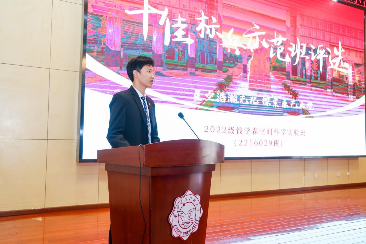 12月4日,西安电子科技大学2023-2024学年“十佳标兵示范班”评选活动在南校区办公楼210报告厅举行,经过材料评审、风采视频展播、辅导员推介和班级代表现场答辩等环节,空间科学与技术学院2216029(钱学森班)获得2023-2024学年“十佳标兵示范班”荣誉称号。这是钱学森班连续第六届获得此项荣誉。