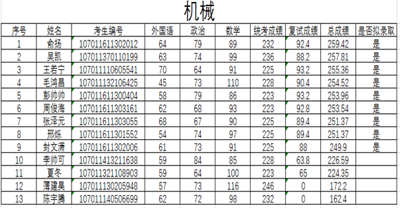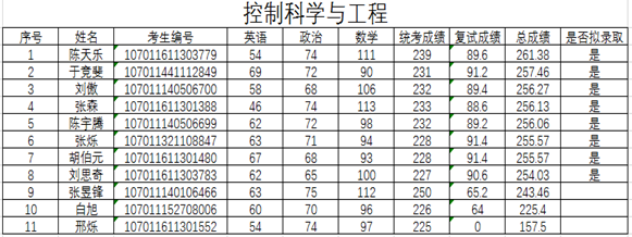 空间科学与技术学院2021年硕士研究生第一批调剂复试结果公示如下: