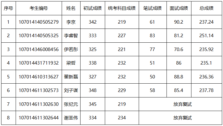 各位考生: 按照学院调剂复试总成绩计算办法,现将学院机械专业(专业代码:085500)调剂考生复试成绩予以公布。如有异议,请于4月12日16:00前以书面或电子邮件方式实名向学院提出,逾期不再受理。 联系电话:029-81891034 电子邮箱:zhangchenhui@xidian.edu.cn 空间科学与技术学院 2024年4月12日