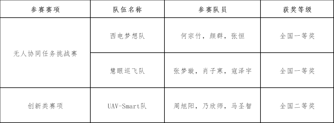 (通讯员 尚保强 张雨萌)近日,由中国人工智能学会主办的第二十五届中国机器人及人工智能大赛全国总决赛在海口落下帷幕。经过激烈角逐,西安电子科技大学空间科学与技术学院代表队在飞思机器人任务挑战赛(无人协同系统)赛道获得全国一等奖2项,在创新类赛项获得全国二等奖1项。进入全国总决赛队伍全部获奖,也是我校在无人机赛道首次获得全国一等奖。