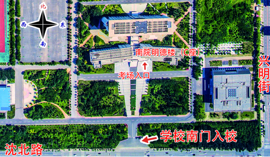 面试报到地点为辽宁省交通高等专科学校明德楼(C座)一楼,C阶一教室。请面试考生从学校南门入校,谢绝考生车辆及陪同人员入校,请提前做好准备。方位图如下: