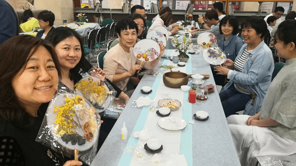 主办方大益茶企业为大家呈现了茶艺表演和古筝演奏,老师们认真聆听了茶文化的知识分享,并积极参加了有奖问答环节。茶艺师们深入各个茶席,为老师们敬茶,指导品茗礼仪并耐心解答咨询。大家纷纷畅所欲言,分享自己对茶文化的独特理解。手工团扇的制作环节,大家用干花装饰出自己喜欢的团扇样式,品茗的同时还感受到了手工艺术的魅力。