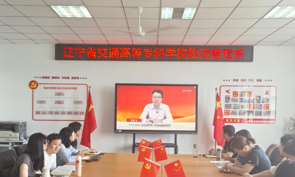 首先,物流管理系学生党支部书记李华以“深刻学习领悟《中国共产党纪律处分条例》”为题,结合自身学习体会和具体案例讲纪律党课。随后是集中学习环节,系党总支副书记尤佳、副主任任斐、副主任张冰华分别领学了《保持清正廉洁 筑牢腐防变底线》(节选自《中国共产党纪律处分条例》学习解读)、《什么是监督执纪“四种形态”》《哪些行为应到党纪责任追究》(节选自《中国共产党纪律处分条例》百问百答)等内容。最后,全系教工党员集中观看了中共中央党校(国家行政学院)党的建设教研部教授曹鹏飞讲授的《习近平总书记关于严明党的纪律和规矩的重要论述》上、下集。