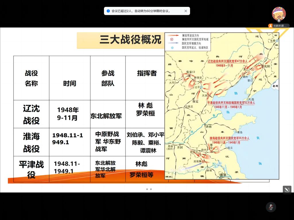 活动分为四个部分,首先,刘新老师向大家介绍解放战争的历史背景,分析了国民党失败的必然原因,以及共产党能够取胜的关键因素。其次,刘新老师讲述了解放战争中的转折点,即三大战役。着重讲解了辽沈战役的经过、历史意义以及影响,通过分享辽沈战役“不吃一个苹果”的故事,让学生感受党是有着铁的纪律的政党,是为人民谋幸福的政党。接下来,刘新老师分享了辽宁的发展方向,近年来取得的成就。最后,大家齐唱《没有共产党就没有新中国》,大家纷纷表示无论是过去还是现在,共产党的初心始终不变,时时把人民放在心上,事事把责任扛在肩上,对这首歌的感受更深了。