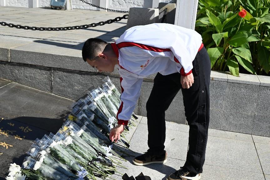 第二个环节是聆听“最可爱的人”的英雄事迹,学生党支部书记刘新老师带领大家来到烈士墓区,介绍安葬在此处的黄继光、杨根思、邱少云、杨连弟等革命英雄保家卫国的英勇事迹,然后带领大家前往烈士英名墙,寻找和自己姓氏相同的革命烈士,了解他们的生平事迹,希望师生能够牢记历史、珍爱和平、坚定信念,顽强拼搏。