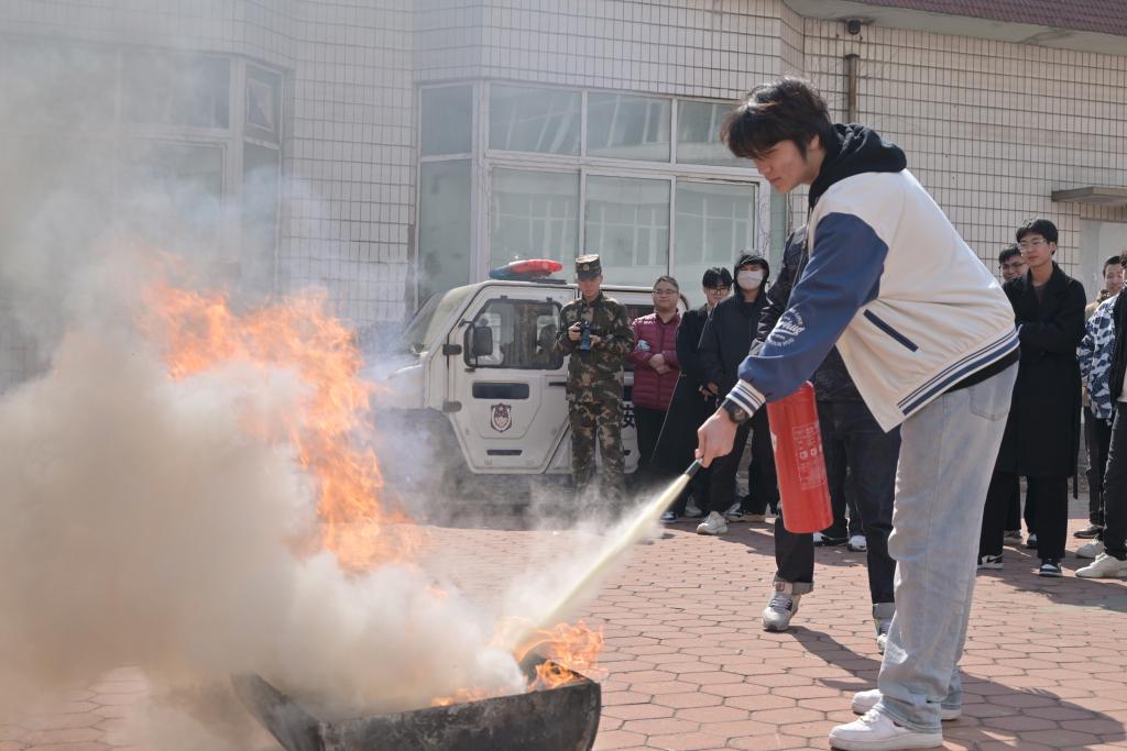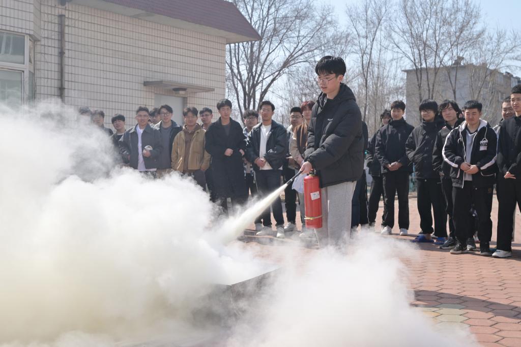 演练的第二个阶段是使用消防器材进行火灾扑灭的实战环节,首先由安全保卫处人员为现场师生详细讲解消防器材的使用方法,包括灭火器、消防栓等设备的操作要领,并给大家做了操作演示。随后,师生们进行实战演练,使用灭火器进行火灾扑灭操作。在演练过程中,大家积极参与,互相配合,迅速掌握了消防安全技能。
