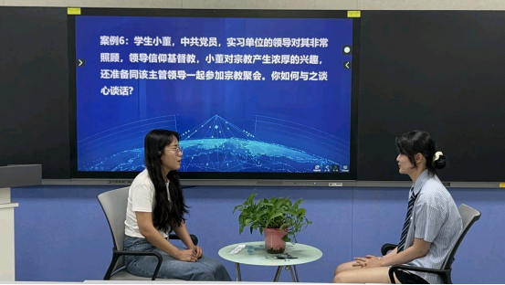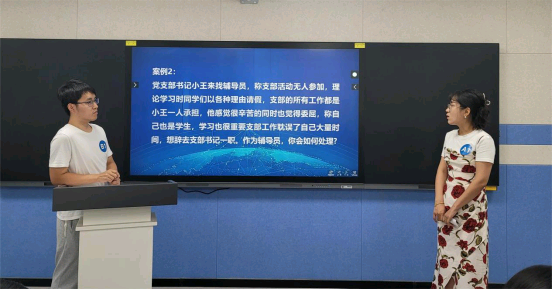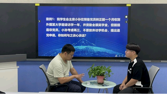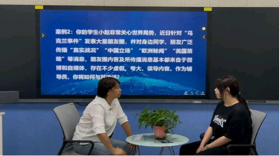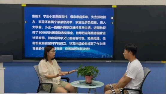 比赛过程中,充分展示了辅导员的专业素养和应对能力。在案例研讨环节,辅导员能够迅速分析问题,提出有效的解决方案。谈心谈话环节共有六道题目,紧密结合辅导员九大工作职责,分别涉及到大学生理论教育和价值引领、网络思想政治教育、学风建设、职业生涯规划与就业指导、党团班级建设等领域。