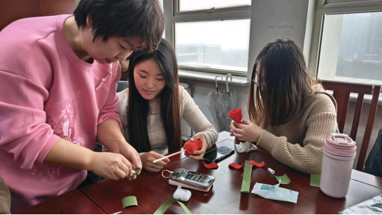 同学们对李雪老师的介绍非常感兴趣,纷纷表示要学习掐纸技艺,亲手制作属于自己的作品。李雪老师耐心的传授了“掐褶”的方法,又拿着预先准备好的材料,指导同学们制作了掐纸玫瑰花。