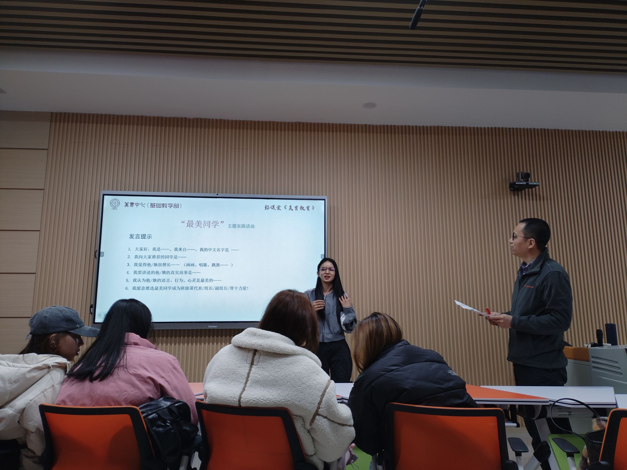 网络技术专业2024级韩嘉怡、刘维越在张刚老师美育教育开学第一课上讲述最美同学故事