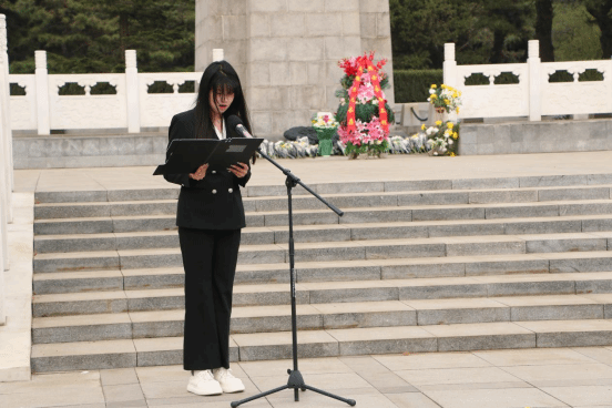 在陵园工作人员的引导下,物流管理系师生列队肃立于巍峨的抗美援朝烈士纪念碑前。随着团总支书记刘校廷老师宣布仪式开始,这场庄严肃穆的祭奠活动正式拉开帷幕。