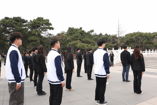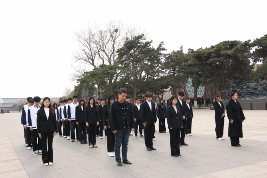 默哀仪式伊始,全体师生垂首肃立。三分钟默哀里,陵园静谧无声,唯有思绪穿越战火,向以热血捍卫和平的英雄致以最深沉的敬意。