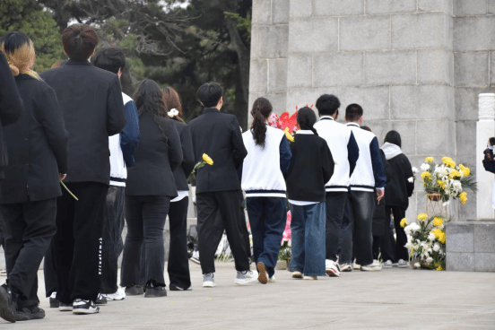 随后,物流管理系师生手捧鲜花,缓步走向抗美援朝烈士纪念碑,依次向烈士致敬,寄托对先烈的无尽追思与崇高敬意