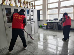 继续教育培训学院分会对所属区域的卫生环境进行大扫除