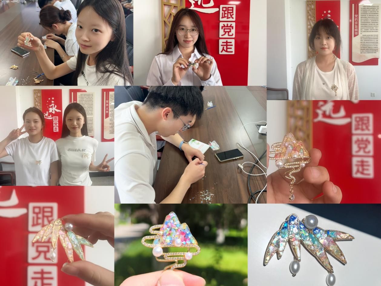 在实践环节中,师生们共同探索了非遗螺钿工艺的独特魅力。在了解螺钿的历史渊源和制作技艺后,大家以清廉为主题,精心创作了翠竹”“高山形象的胸针作品。制作过程中,师生们深刻体会到,只有保持全神贯注、精益求精的态度,才能让作品绽放流光溢彩的艺术效果,这一过程也是对工匠精神的生动诠释。