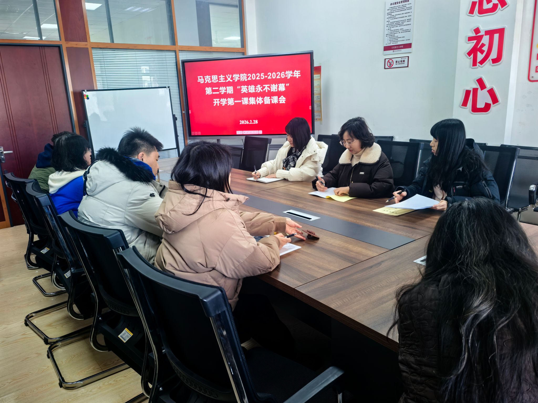 为确保思政课教学内容与活动主题深度融合,马克思主义学院于开学前组织全体思政课教师开展了“英雄永不谢幕”主题集体备课会。会上,教师们围绕辽宁英雄人物的典型事迹,结合课程教学大纲,深入研讨如何将英雄精神有机融入课堂教学,提升思政课的吸引力和感染力。备课会还就如何运用AI等新技术手段创新教学方式进行了交流,推动教学内容与形式的双重创新。