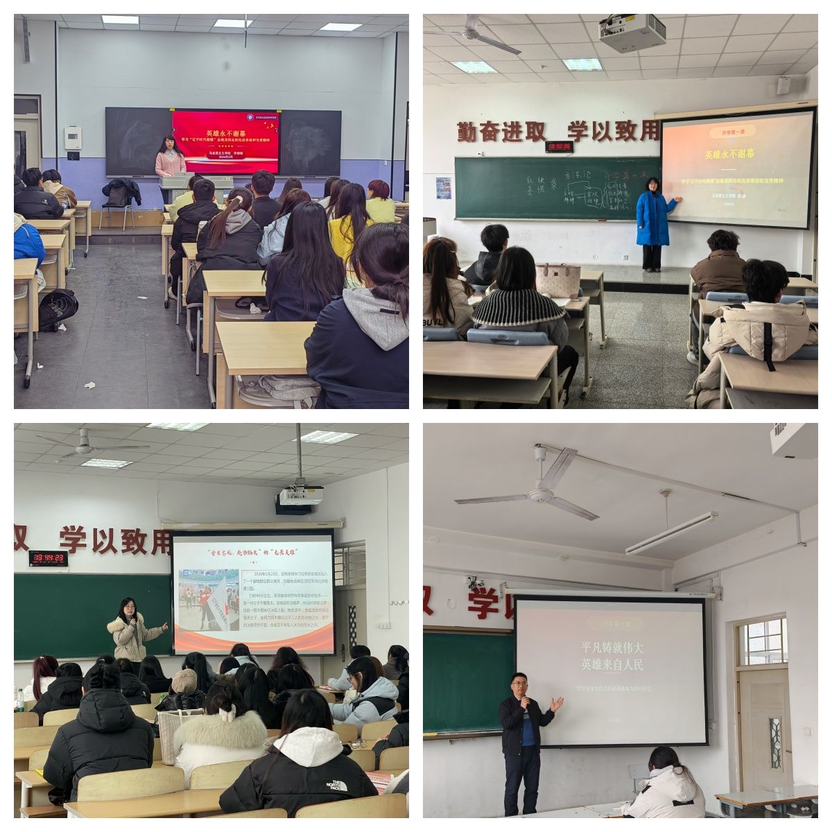 同时,“学习英雄、崇尚英雄、争做先锋”已有机融入春季学期思政课实践教学内容中。马克思主义学院计划组织学生走进爱国主义教育基地、深入基层一线,开展实地调研、访谈交流、志愿服务等实践项目,推动思政小课堂与社会大课堂深度融合,引导学生在实践中感悟英雄精神、砥砺报国之志。