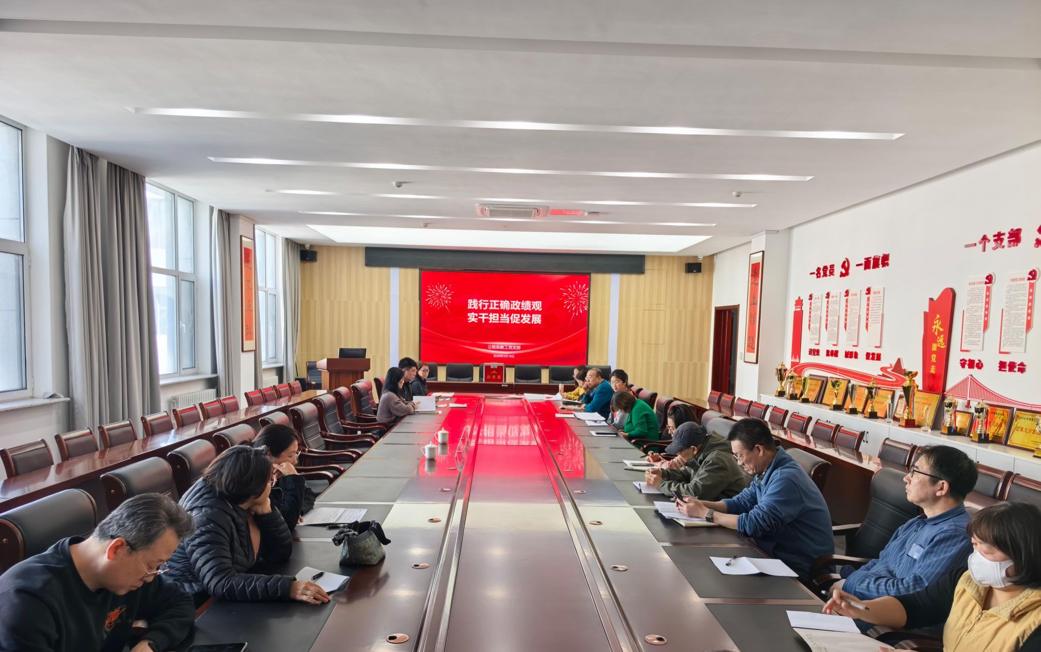 为深入学习贯彻党中央及省委、省委教育工委关于开展树立和践行正确政绩观学习教育的部署要求,引导全体党员筑牢思想根基、校准行动导向,切实把思想和行动统一到党中央决策部署上来,3月18日,公铁系教工党支部、学生党支部以“践行正确政绩观,实干担当促发展”为主题分别开展主题党日活动。